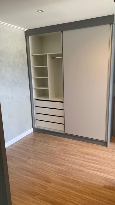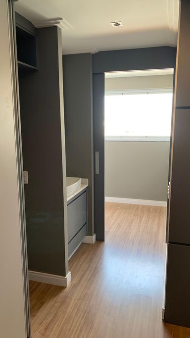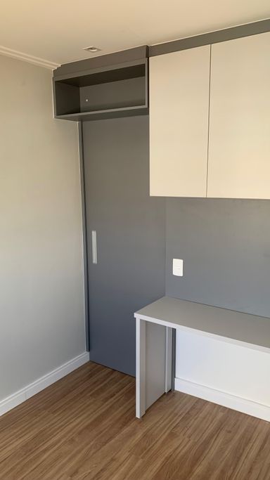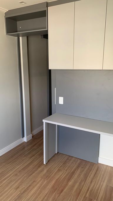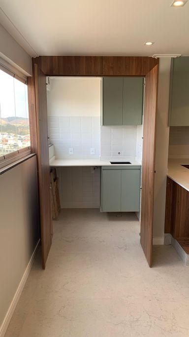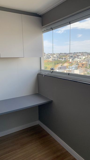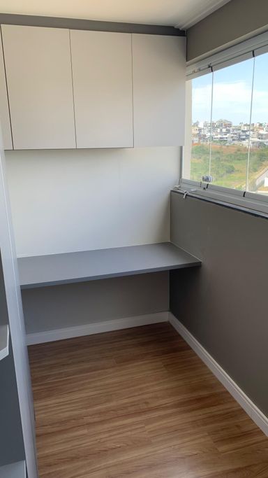 A varanda pode ser transformada em um charmoso home office ou em um espaçoso closet.