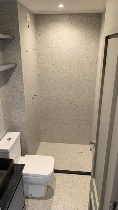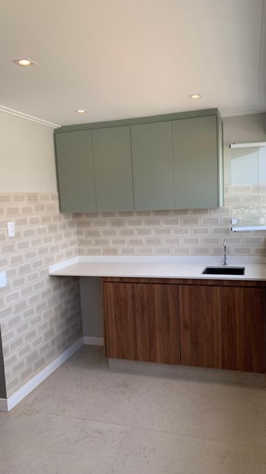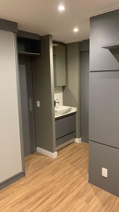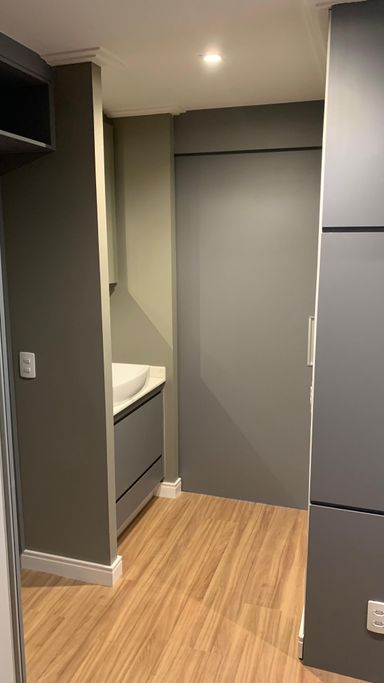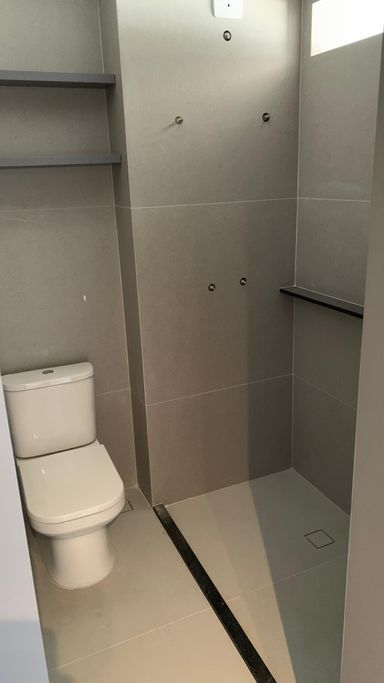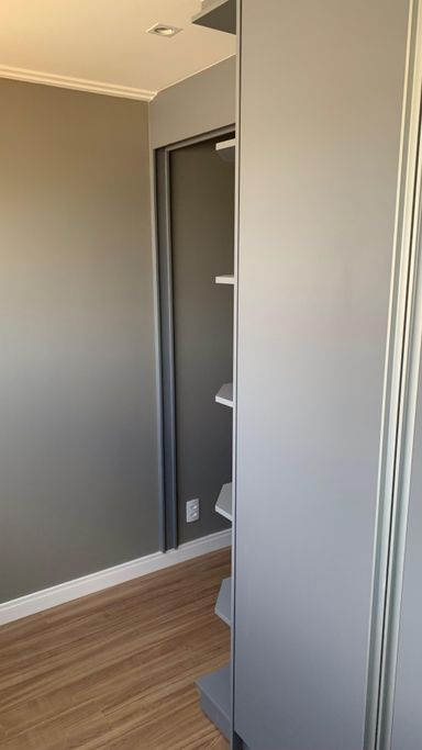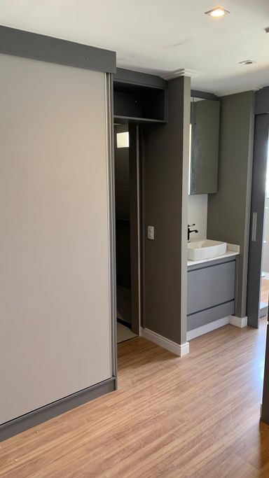 Acabamentos de alto padrão: piso laminado nos quartos, porcelanato Portinari na sala e revestimentos premium.