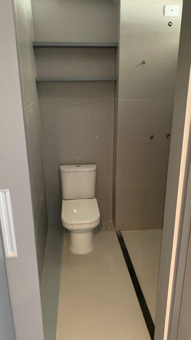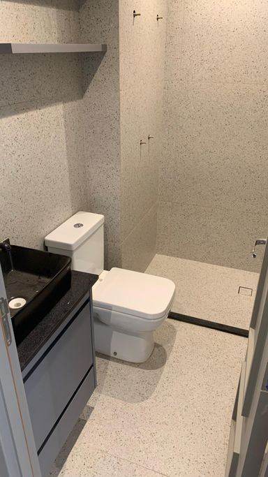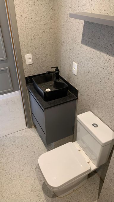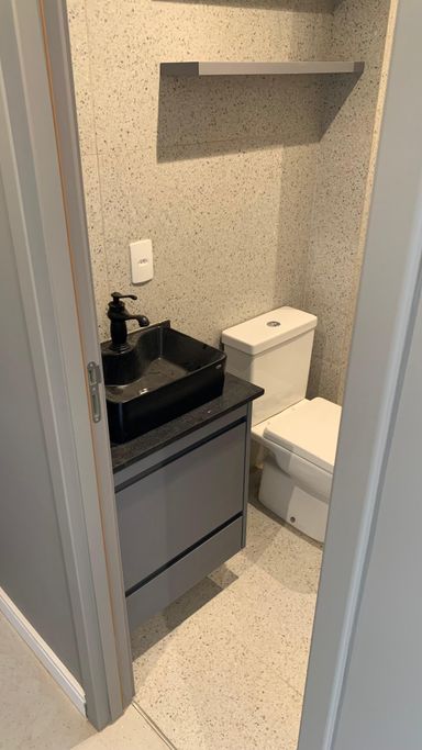 Banheiro social isolado da sala para maior privacidade.