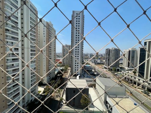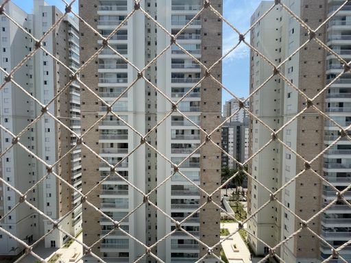 Janelas com blackout, tela mosquiteiro e rede de proteção, unindo segurança e tranquilidade.