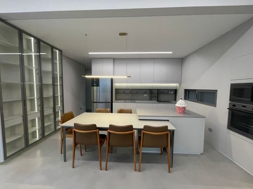 Cozinha e espaço gourmet integrados, com acabamentos sofisticados e funcionais