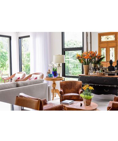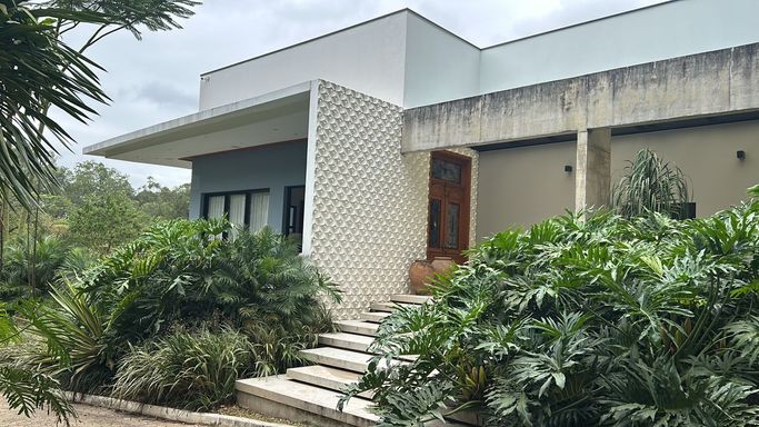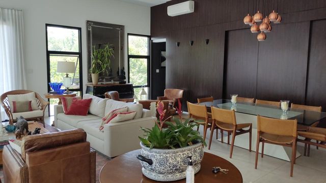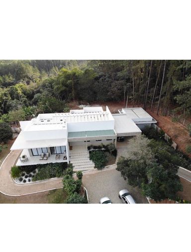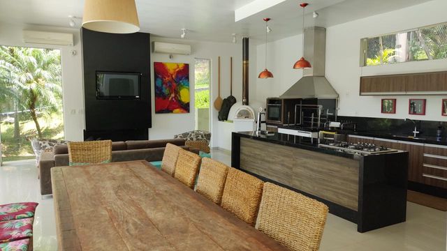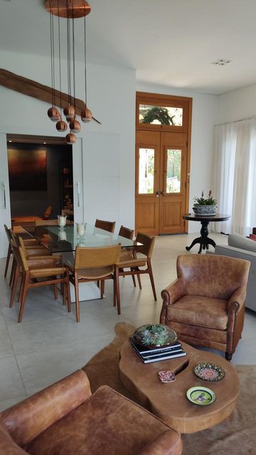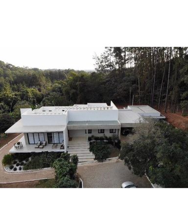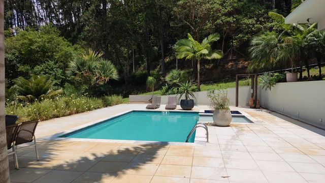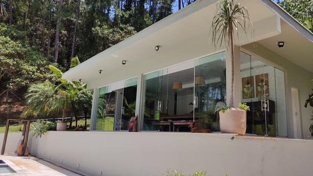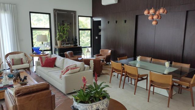 Residência com ambientes integrados, junto a natureza, sendo a sua arquitetura contemporânea ao mesmo tempo sofisticada.