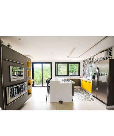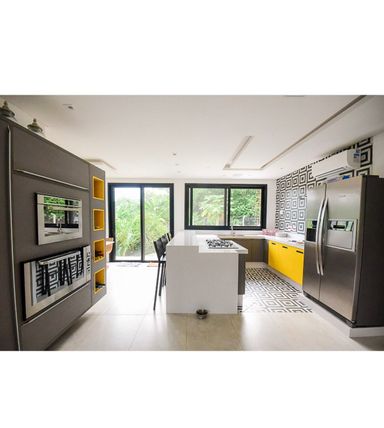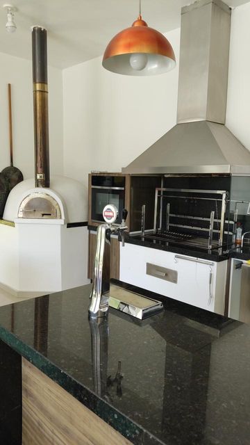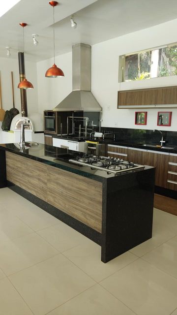 - A Cozinha conceito aberto, se integra à sala e conta com armários de primeira linha da Stilo Movelaria, além de bancada em Silestone Certificado e eletrodomésticos embutidos;