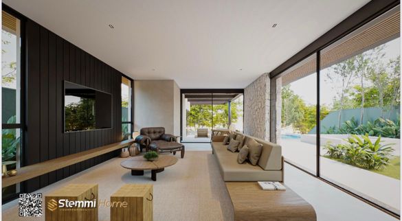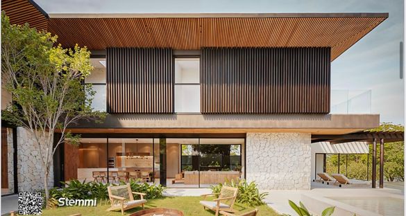 Com 800,88 m² de terreno e 650 m² de área construída, a casa se destaca por suas linhas marcantes, integração total dos espaços, pé-direito imponente e projeto assinado por profissionais de referência | Projeto: SonneMüller | Interiores: DNA móveis | Construção: StemmiHome.